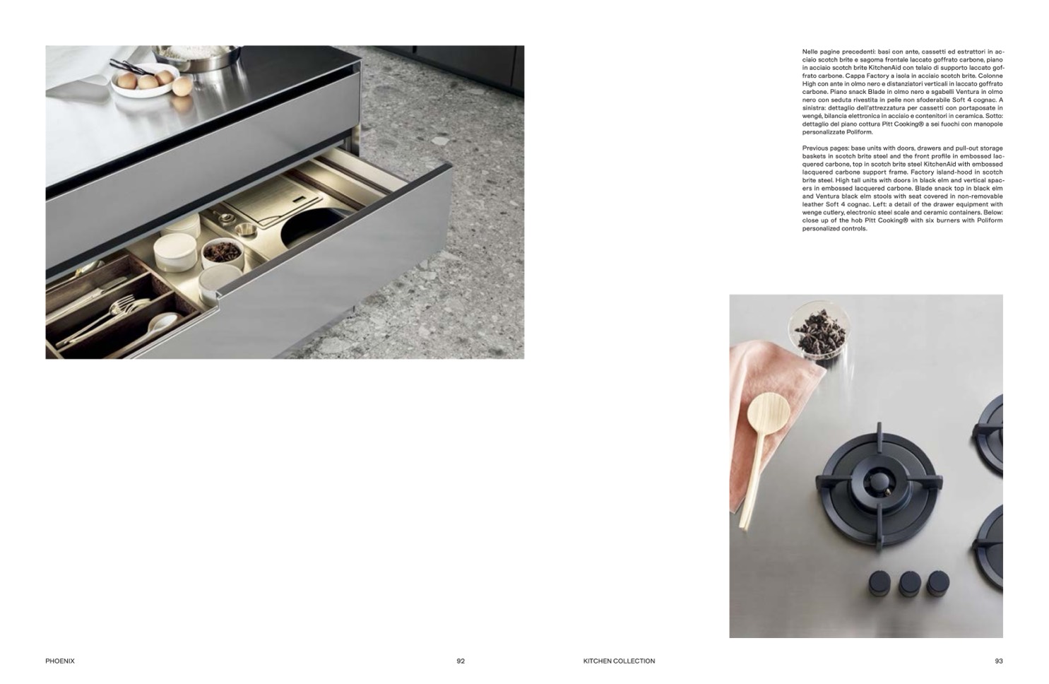 Nelle pagine precedenti: basi con ante, cassetti ed estrattori in ac-