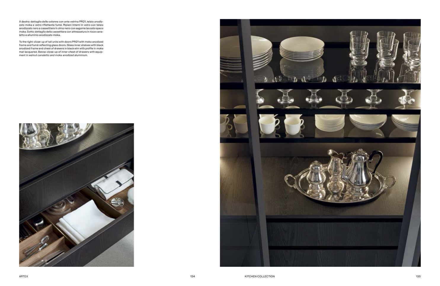 To the right: close-up of tall units with doors PR21 with moka anodized