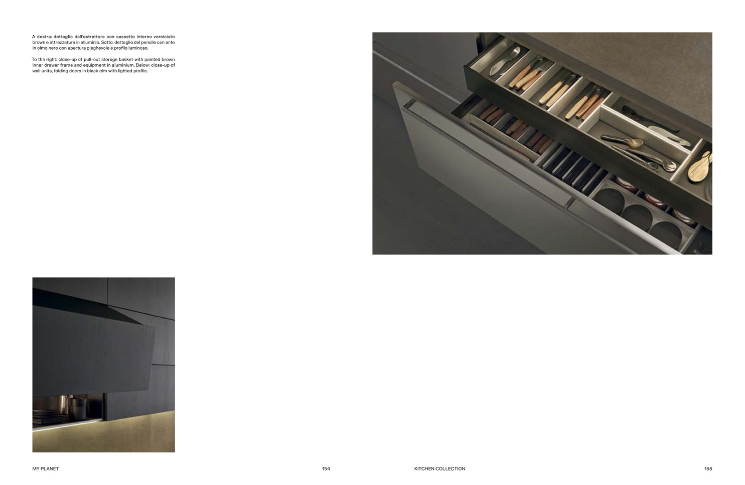 brown e attrezzatura in alluminio. Sotto: dettaglio del pensile con ante