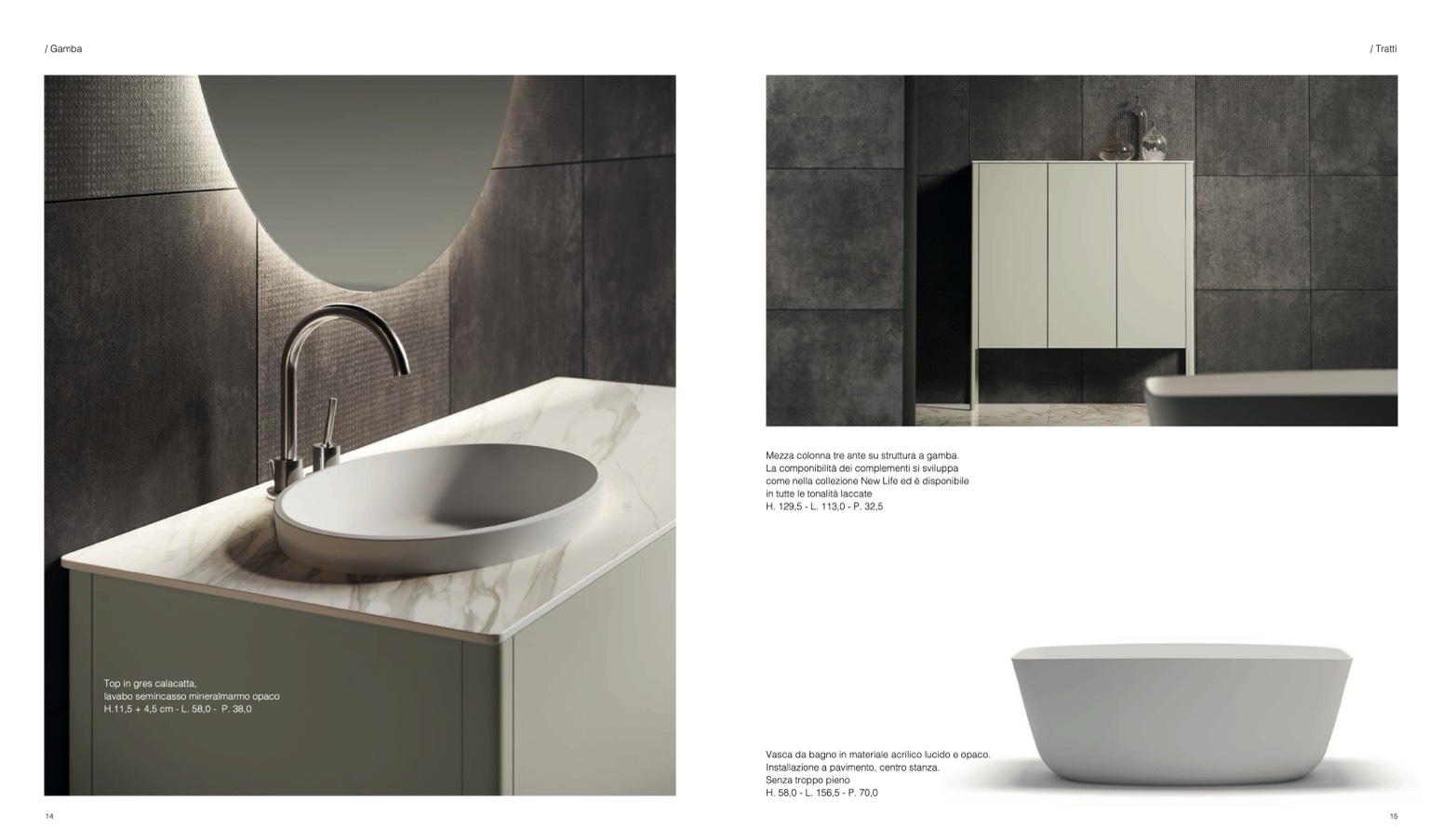 Vasca da bagno in materiale acrilico lucido e opaco.
