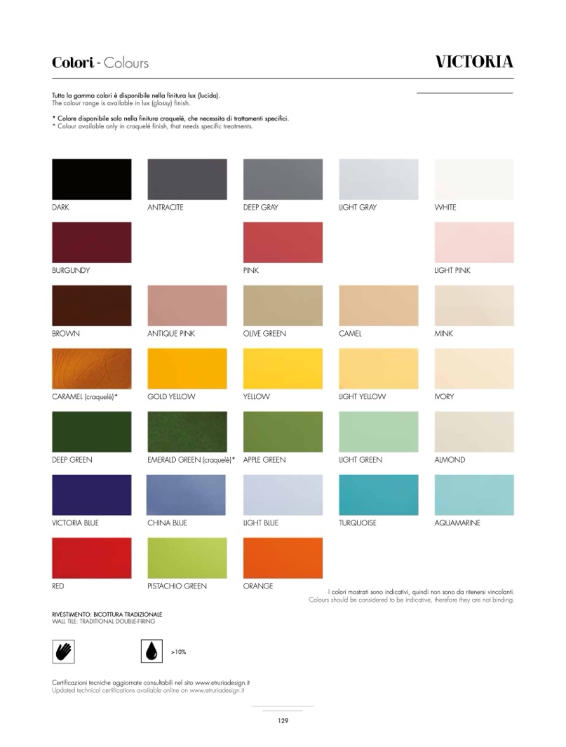 * Colour available only in craquelé finish, that needs specific treatments.