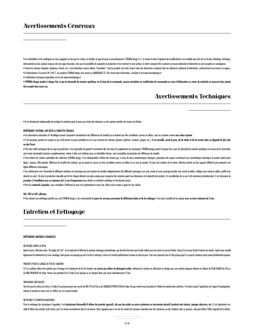 • Les échantillons et les catalogues ne nous engagent en rien pour la couleur, la tonalité, le type de pose ou de jointoiement. ETRURIA design S.r.l. se réserve le droit d’apporter des modi