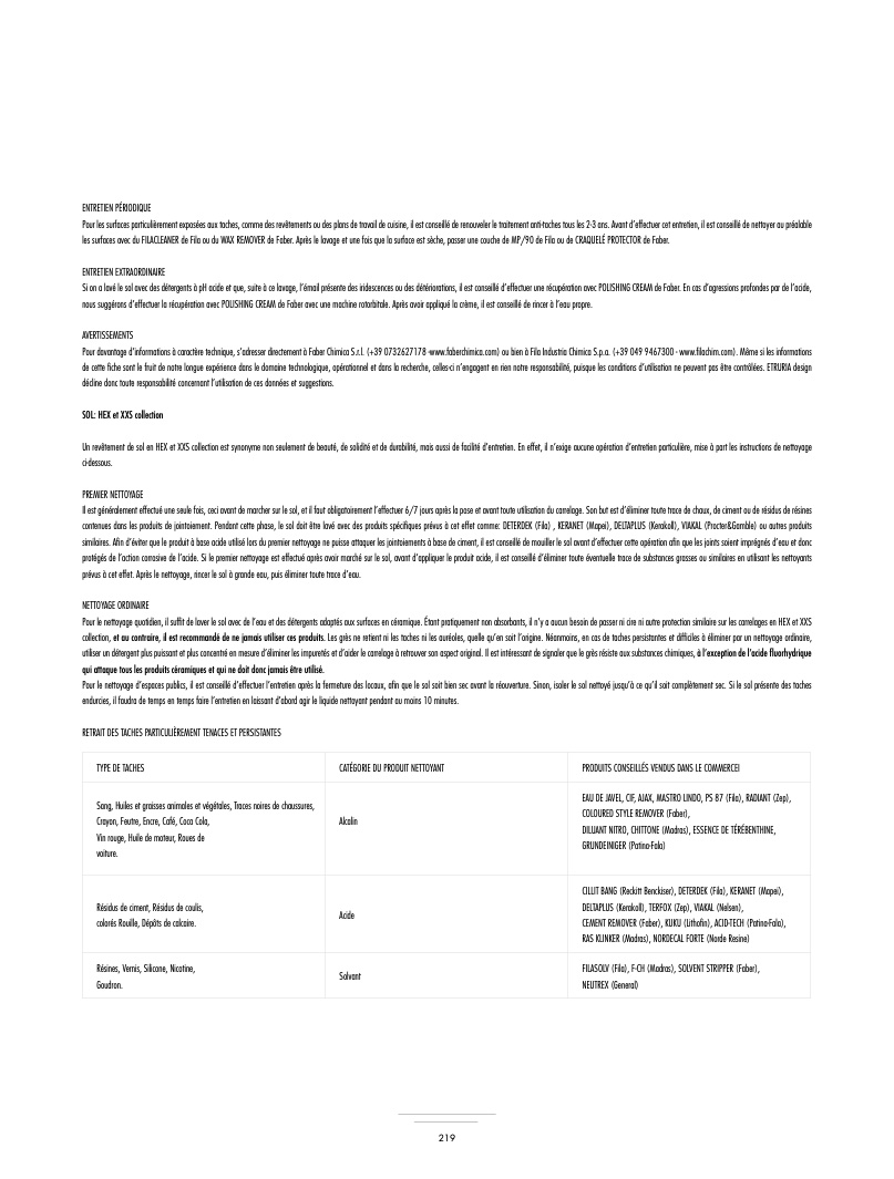 les surfaces avec du FILACLEANER de Fila ou du WAX REMOVER de Faber. Après le lavage et une fois que la surface est s