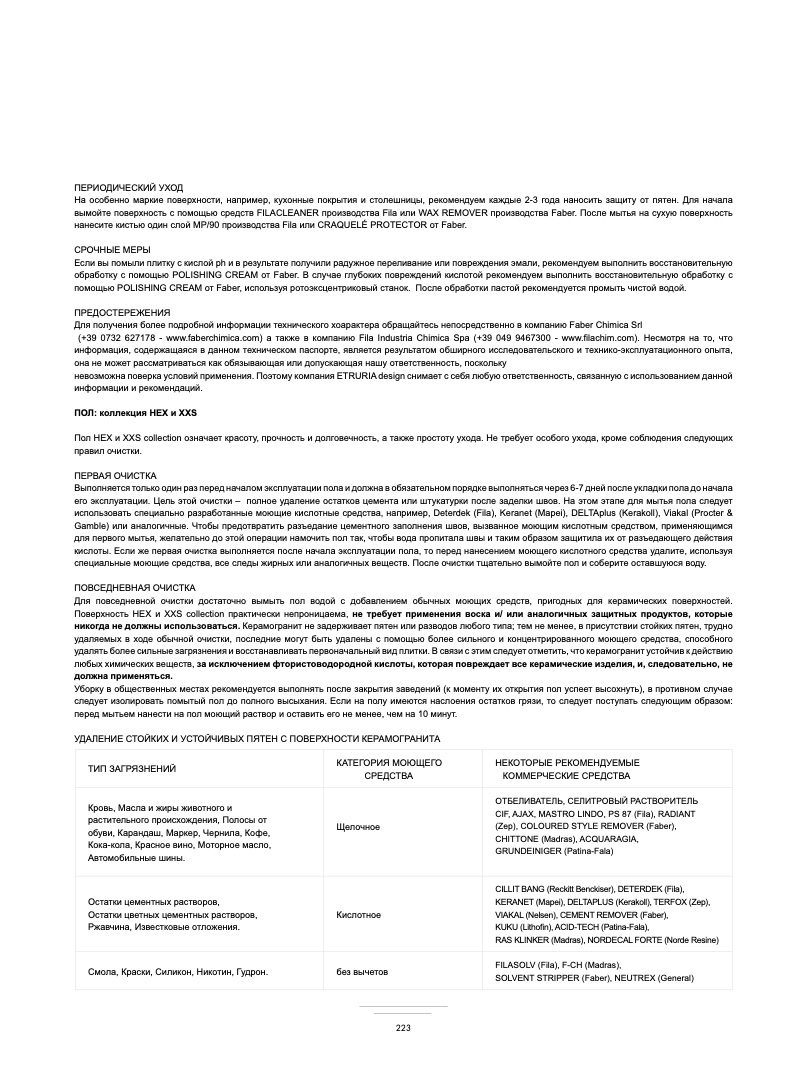 Для получения более подробной информации технического хоарактера обращайтесь непосредственно в компанию Faber Chimica Srl