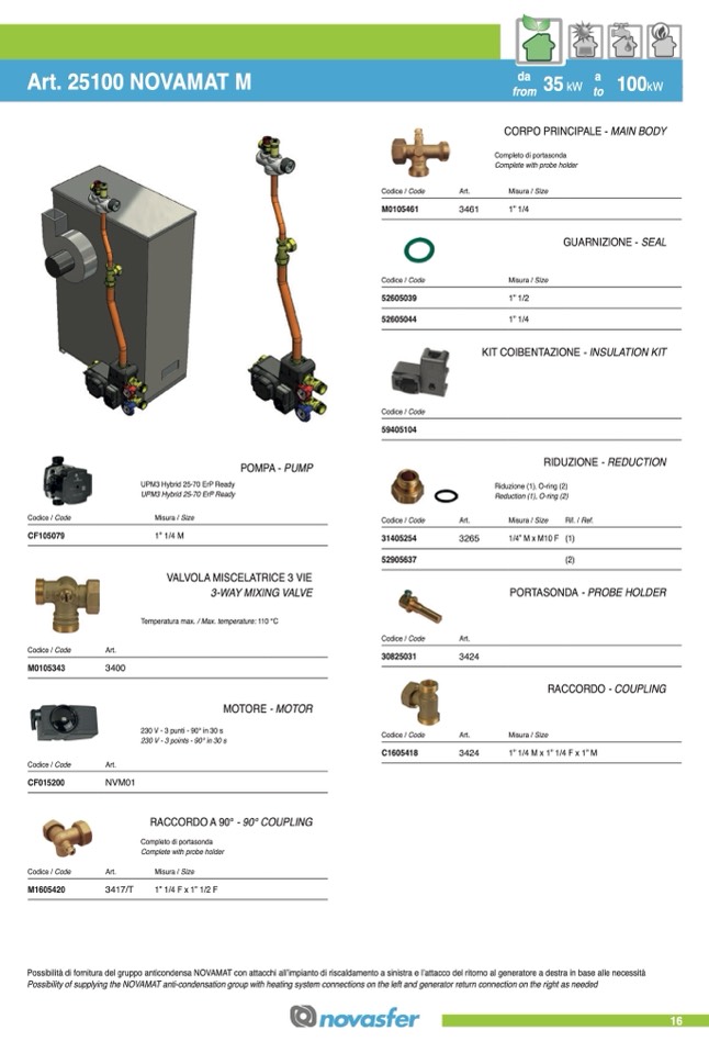 Possibility of supplying the NOVAMAT anti-condensation group with heating system connections on the left and generator return connection on the right as needed