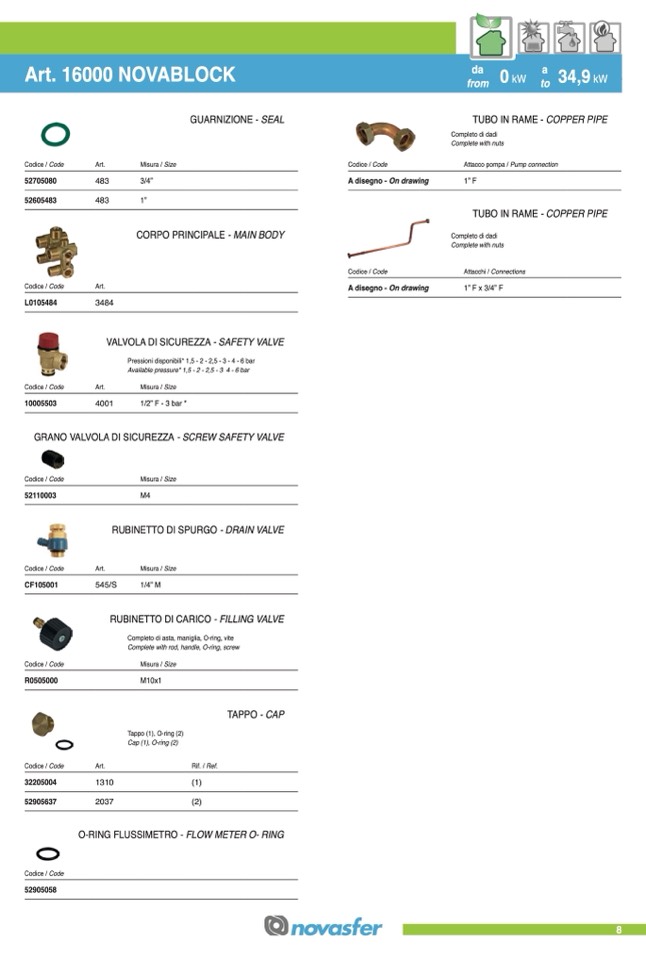 Pressioni disponibili* 1,5 - 2 - 2,5 - 3 - 4 - 6 bar
