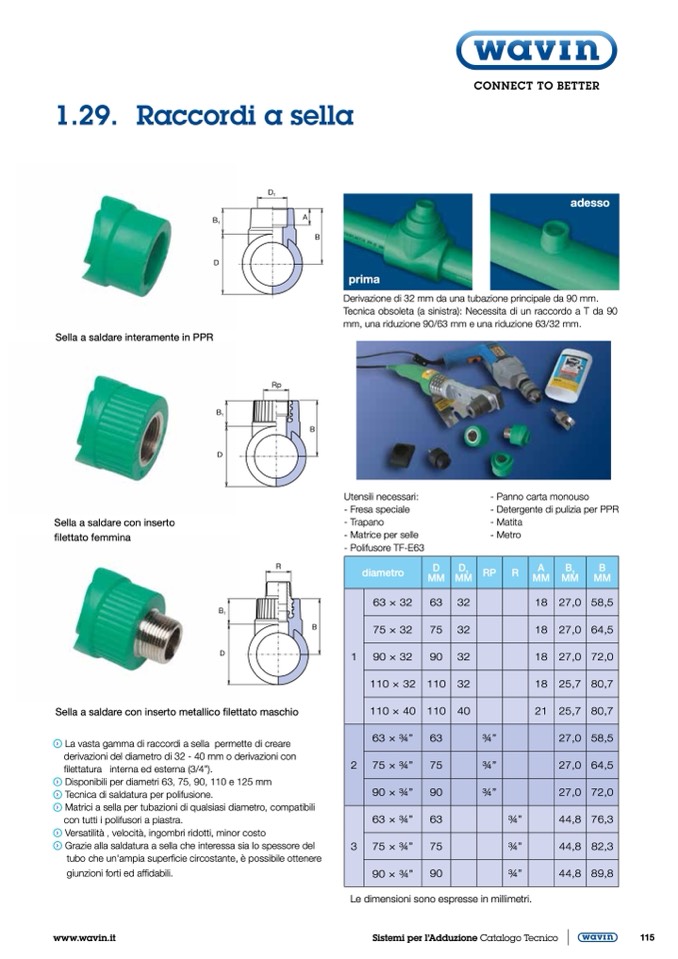 mm, una riduzione 90/63 mm e una riduzione 63/32 mm.