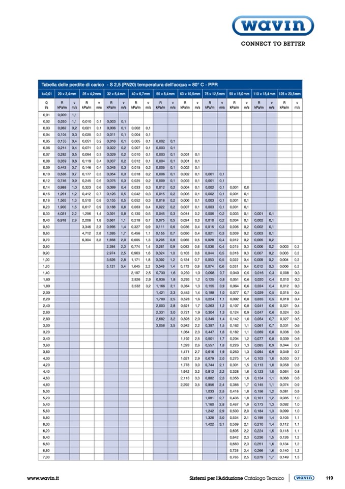 Tabella delle perdite di carico - S 2,5 (PN20) temperatura dell'acqua = 80° C - PPR