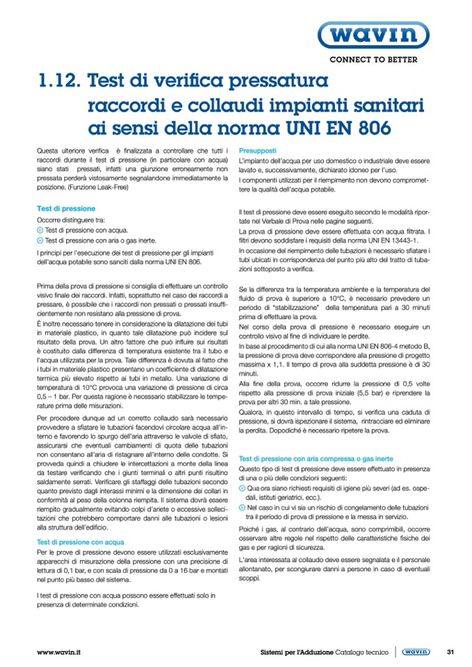 dell’acqua potabile sono sanciti dalla norma UNI EN 806.