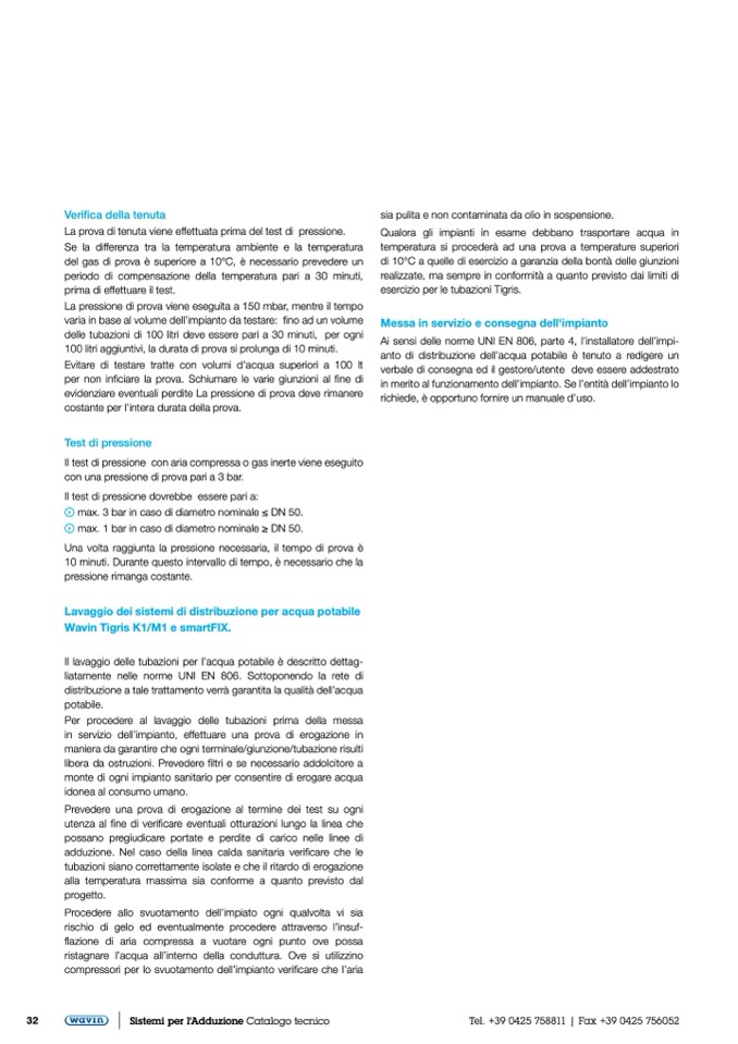 Il lavaggio delle tubazioni per l’acqua potabile è descritto dettag-