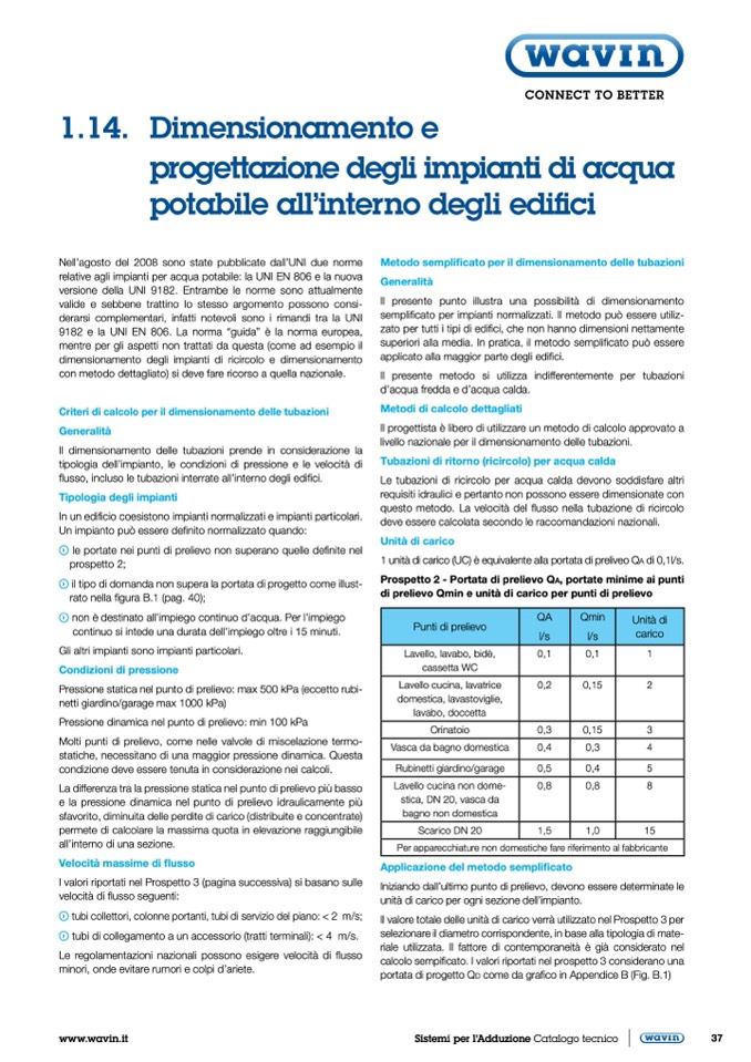 1 unità di carico (UC) è equivalente alla portata di preliveo QA di 0,1l/s.