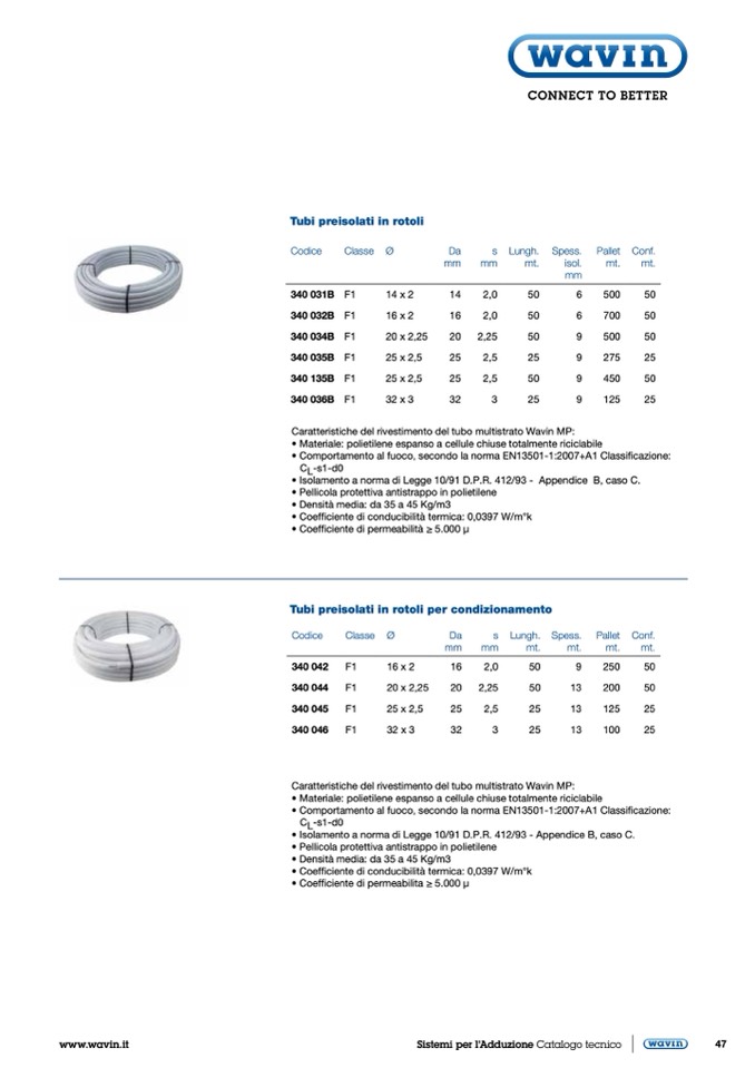 • Coefficiente di conducibilità termica: 0,0397 W/m°k