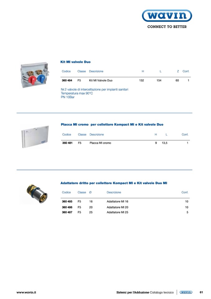 Adattatore dritto per collettore Kompact MI e Kit valvole Duo MI