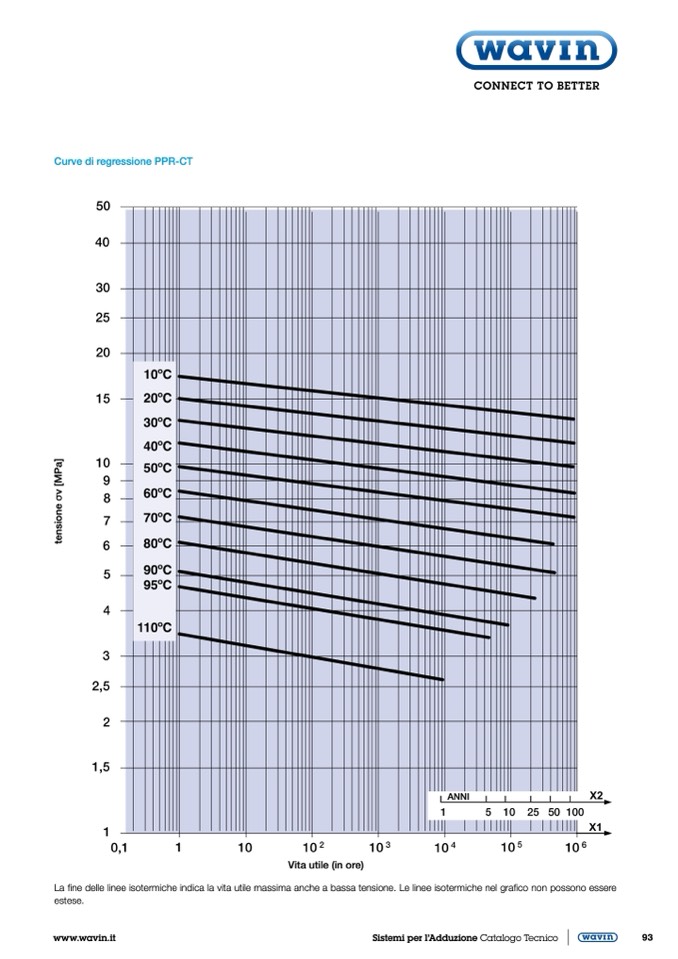 La fine delle linee isotermiche indica la vita utile massima anche a bassa tensione. Le linee isotermiche nel grafico non possono essere