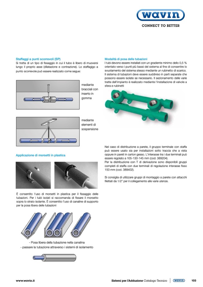 I tubi devono essere installati con un gradiente minimo dello 0,5 %