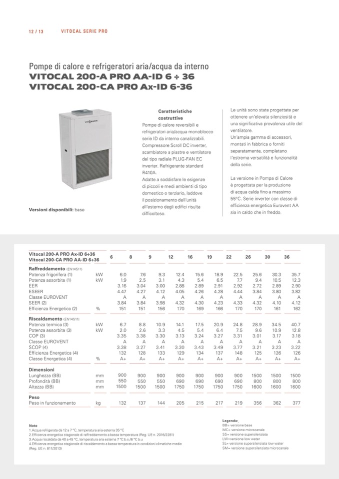 1.Acqua refrigerata da 12 a 7 °C, temperatura aria esterna 35 °C