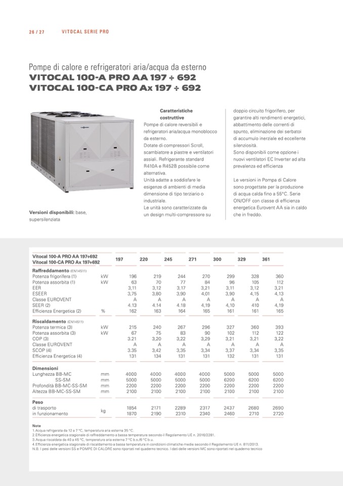 1.Acqua refrigerata da 12 a 7 °C, temperatura aria esterna 35 °C.