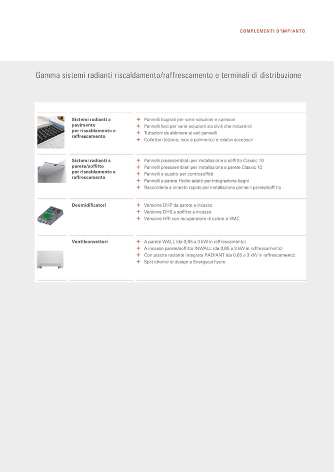 Gamma sistemi radianti riscaldamento/raffrescamento e terminali di distribuzione