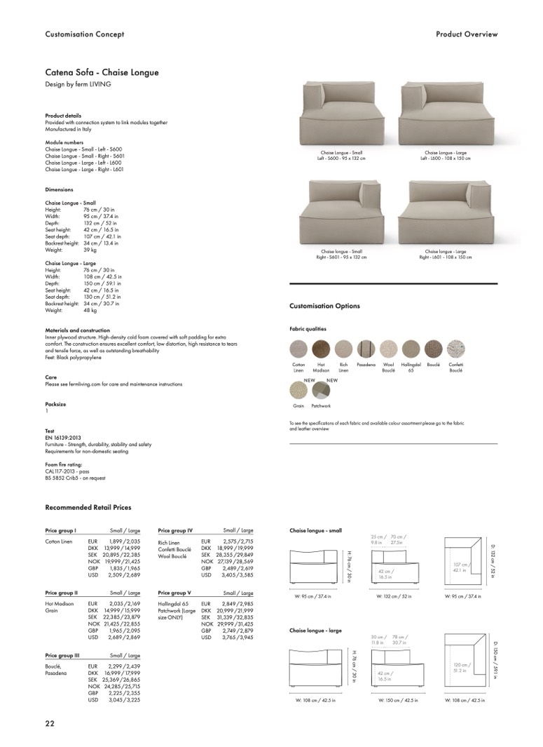Chaise Longue - Small - Left - S600
