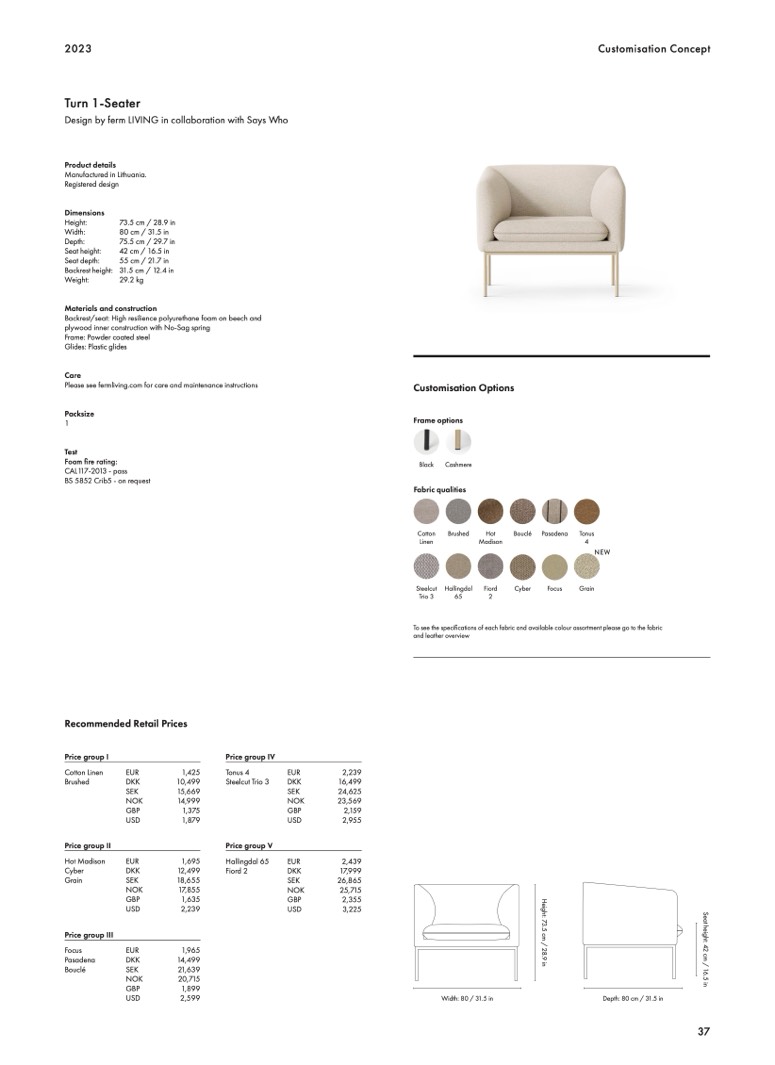 Depth: 80 cm / 31.5 in