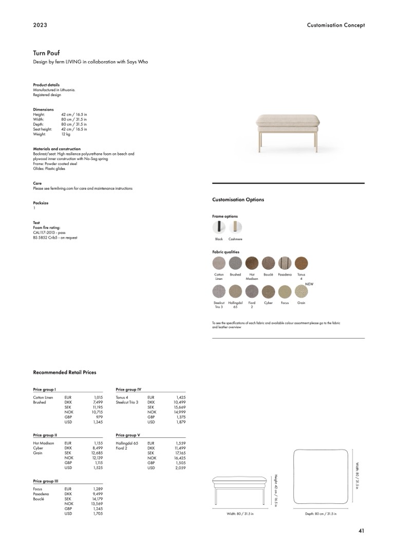 To see the specifications of each fabric and available colour assortment please go to the fabric