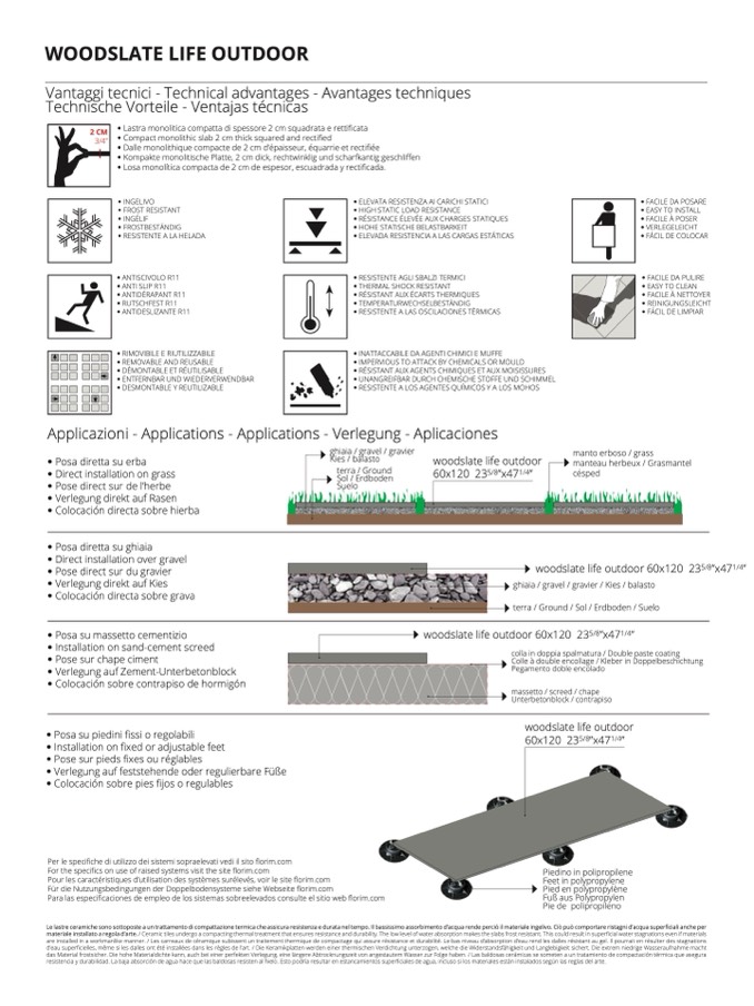 d’eau superficielles, même si les dalles ont été installées dans les règles de l’art. / Die Keramikplatten werden einer thermischen Verdichtung unterzogen, welche die Widerstandsfähigkeit und Langlebigkeit sichert. Die extrem niedrige Wasseraufnahme macht