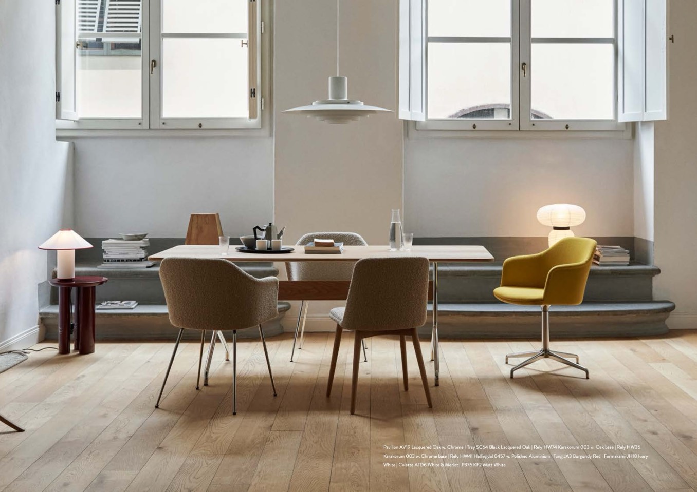 Pavilion AV19 Lacquered Oak w. Chrome I Tray SC64 Black Lacquered Oak | Rely HW74 Karakorum 003 w. Oak base | Rely HW36
