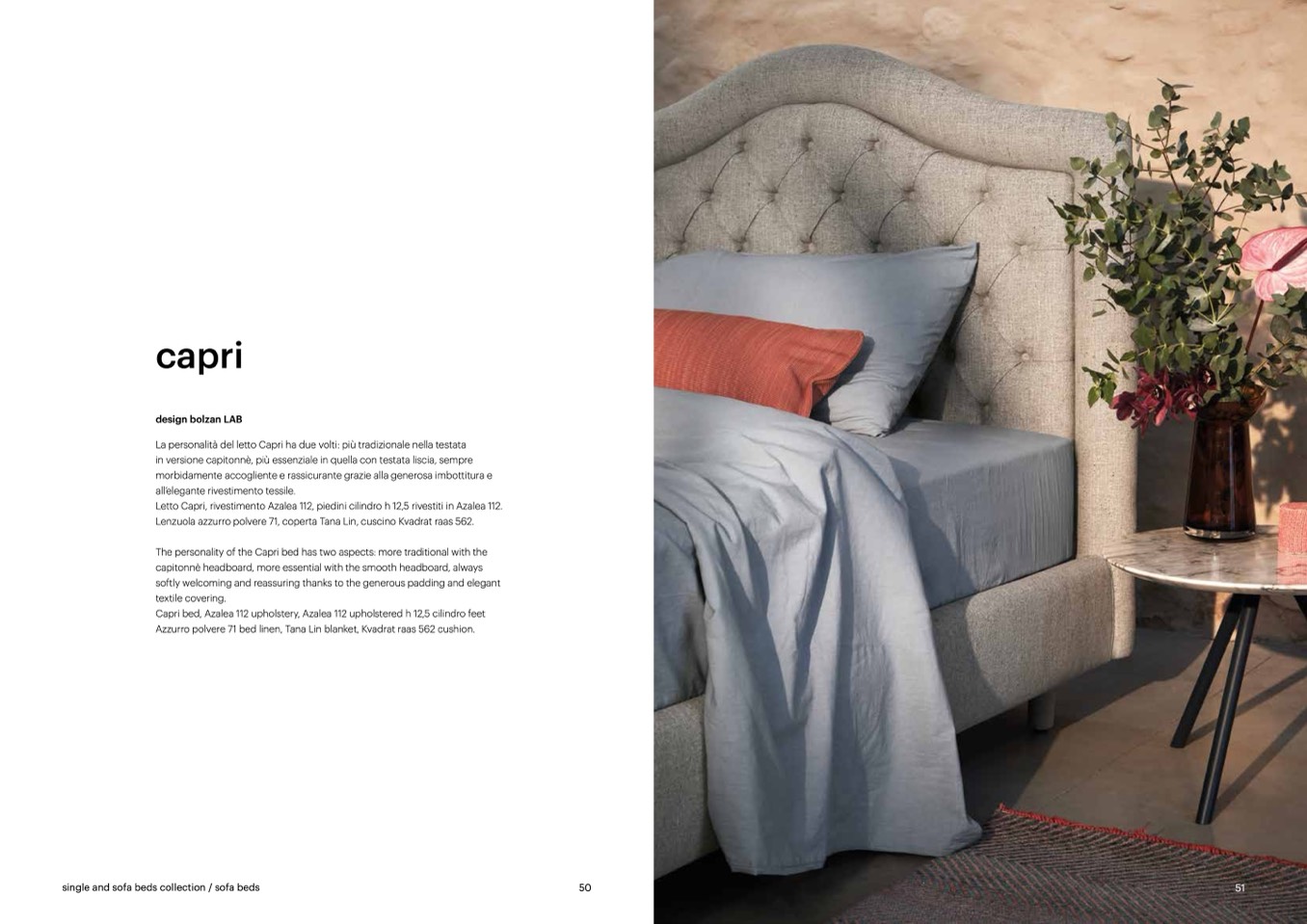La personalità del letto Capri ha due volti: più tradizionale nella testata