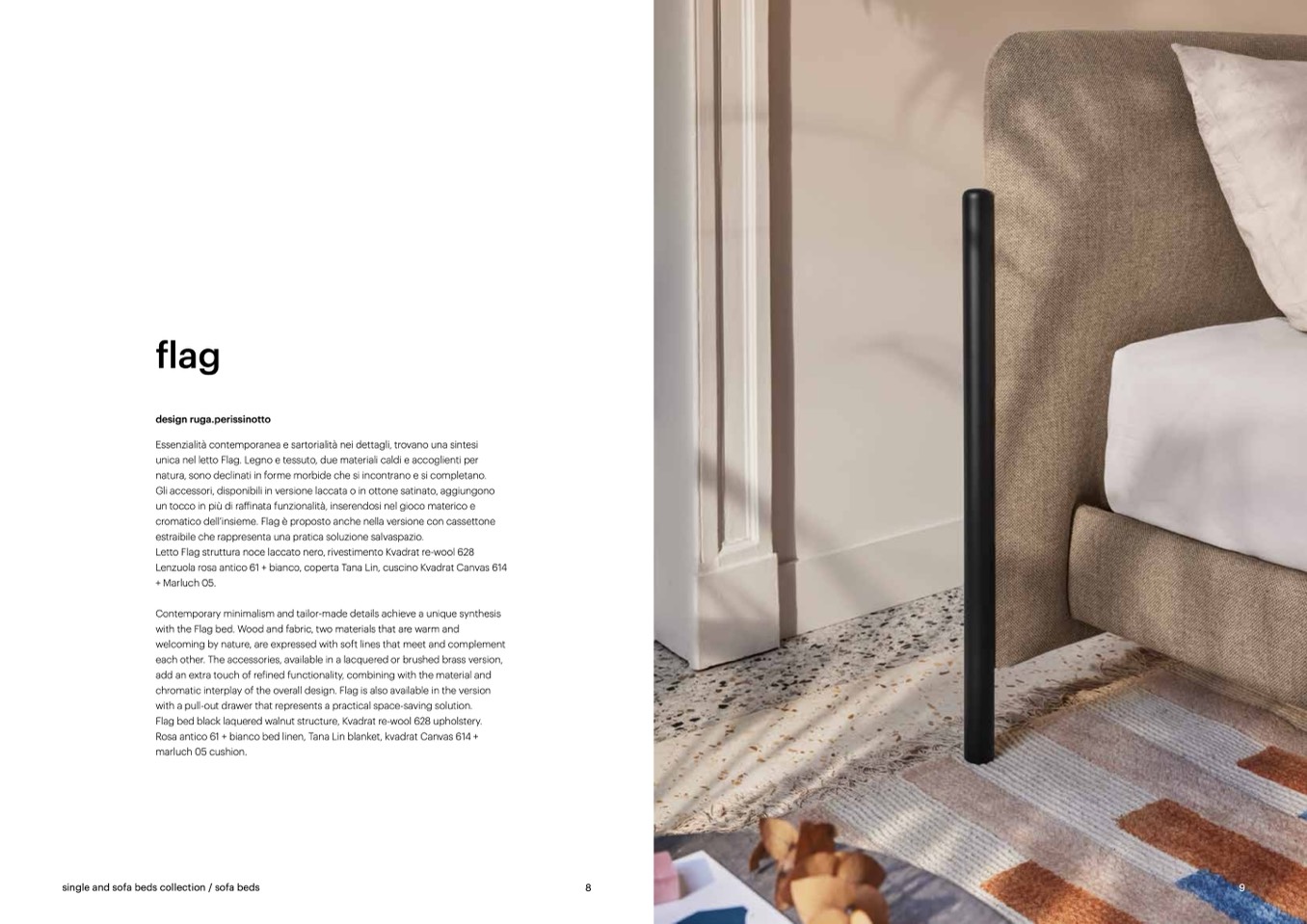 with the Flag bed. Wood and fabric, two materials that are warm and