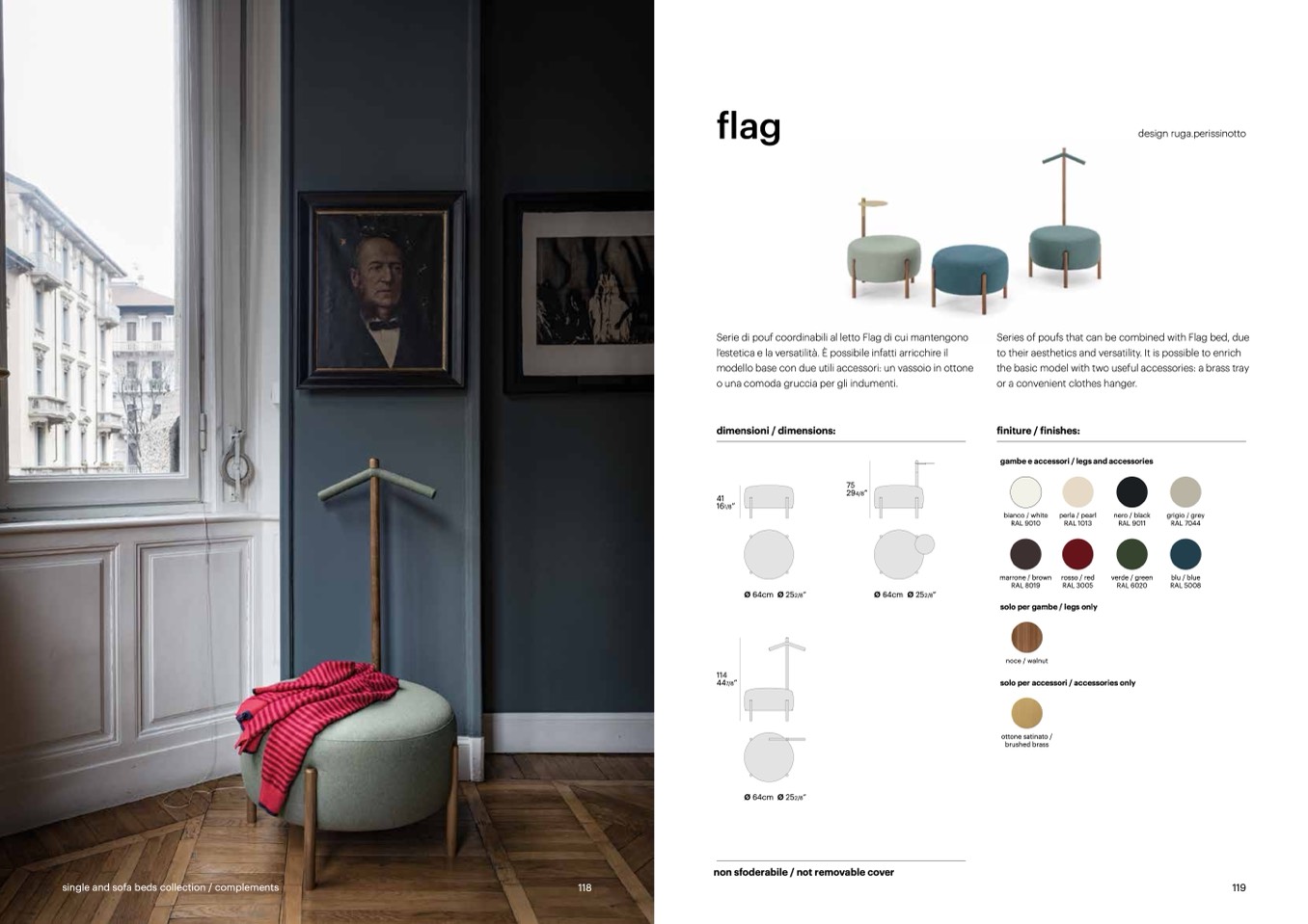 Serie di pouf coordinabili al letto Flag di cui mantengono
