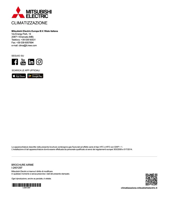 Le apparecchiature descritte nella presente bruchure contengono gas fluorurati ad effetto serra di tipo HFC o HFO con GWP > 1.