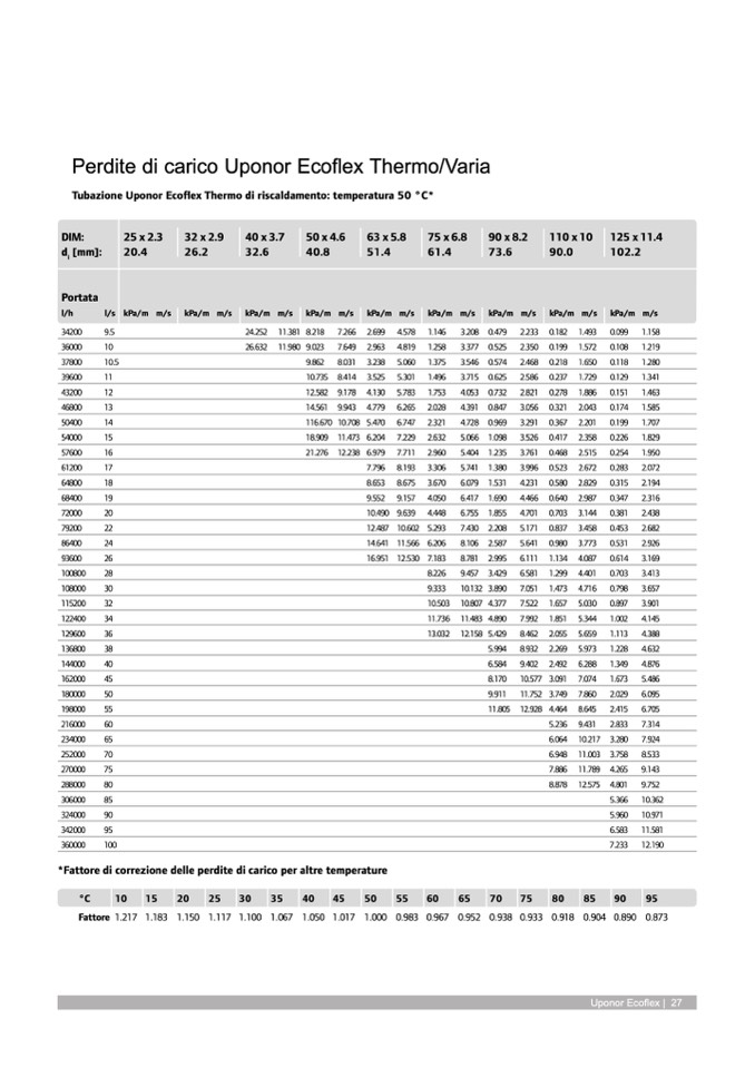 Perdite di carico Uponor Ecoflex Thermo/Varia