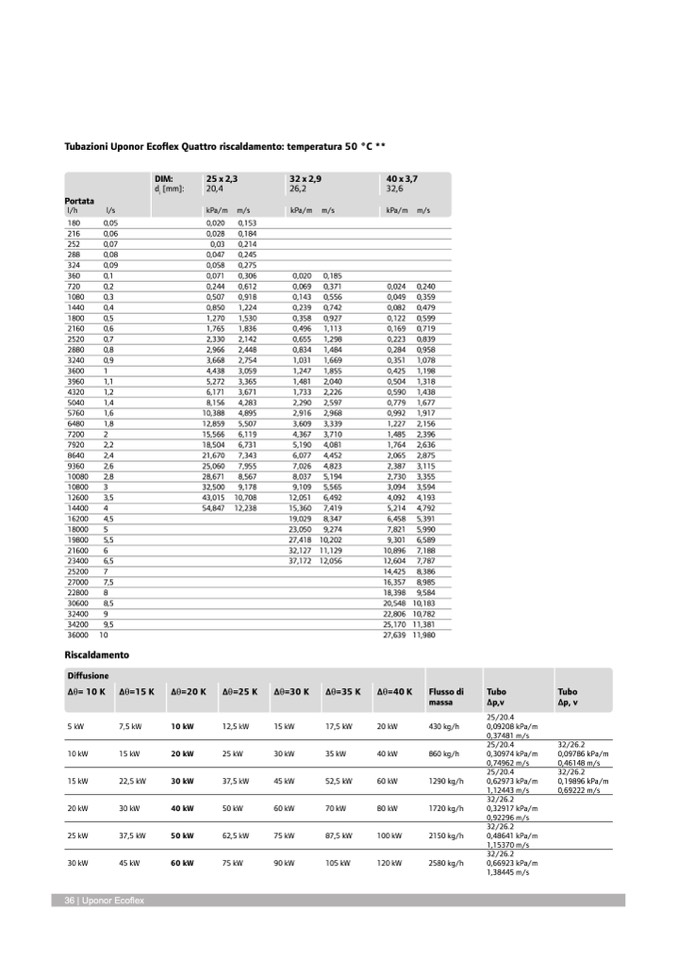 Tubazioni Uponor Ecoflex Quattro riscaldamento: temperatura 50 °C **