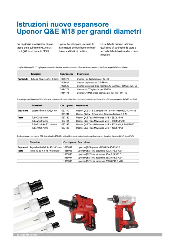 Il nuovo espansore Uponor Q&E M18 a batteria può essere utilizzato i nell'installazione di piccoli impianti dove i diametri dei tubi non sono superiori al 40x3,7 mm (PN6).