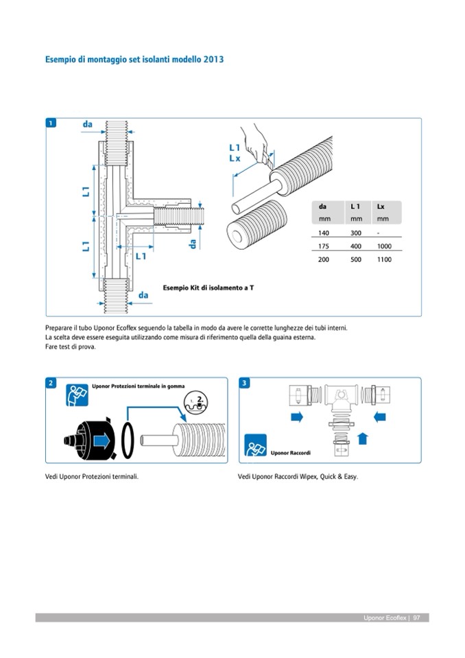 Preparare il tubo Uponor Ecoflex seguendo la tabella in modo da avere le corrette lunghezze dei tubi interni.