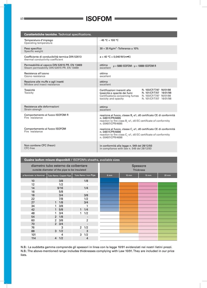 Guaine isofom misure disponibili / ISOFOM’s sheaths, available sizes