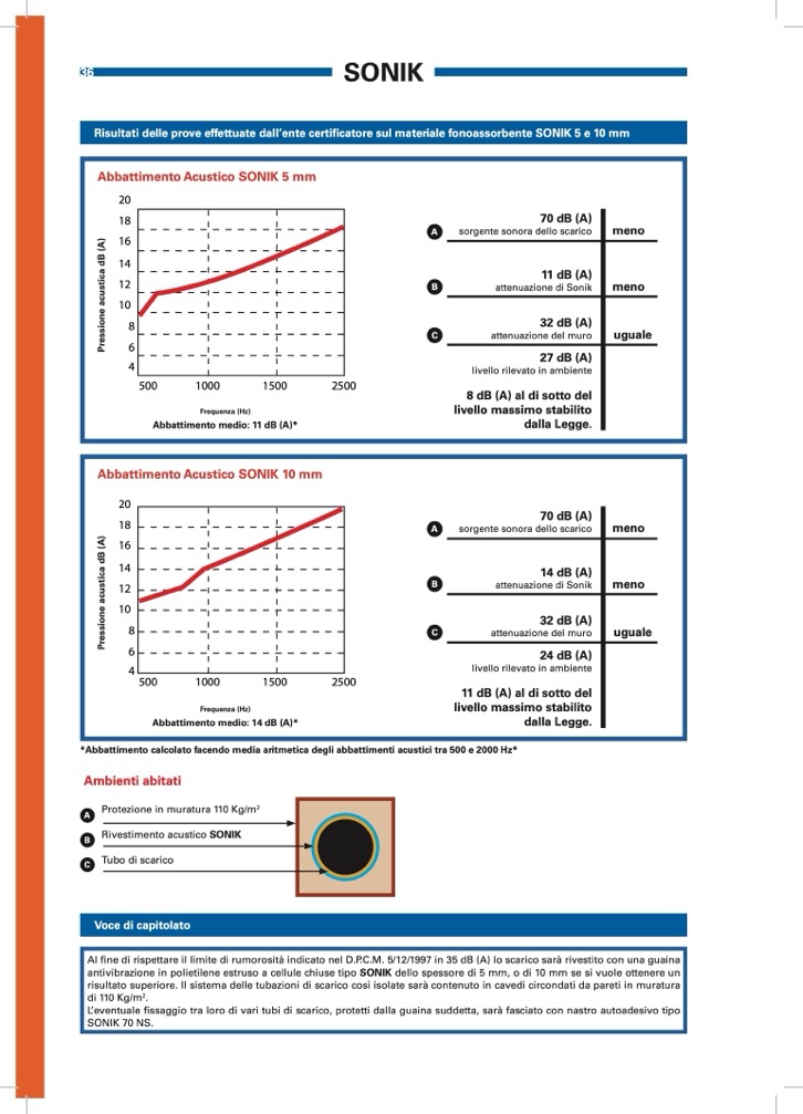 à indicato nel D.P.C.M. 5/12/1997 in 35 dB (A) lo scarico sarà rivestito con una guaina