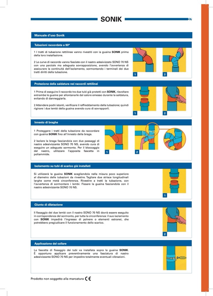 2 Le curve di raccordo vanno fasciate con il nastro adesivizzato SONO 70 NS