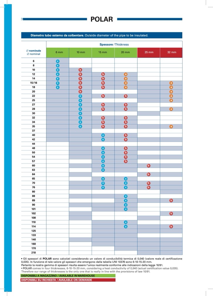 • POLAR comes in four thicknesses, 6-10-15-20 mm, considering a heat conductivity of 0,040 (actual certification value 0,035).