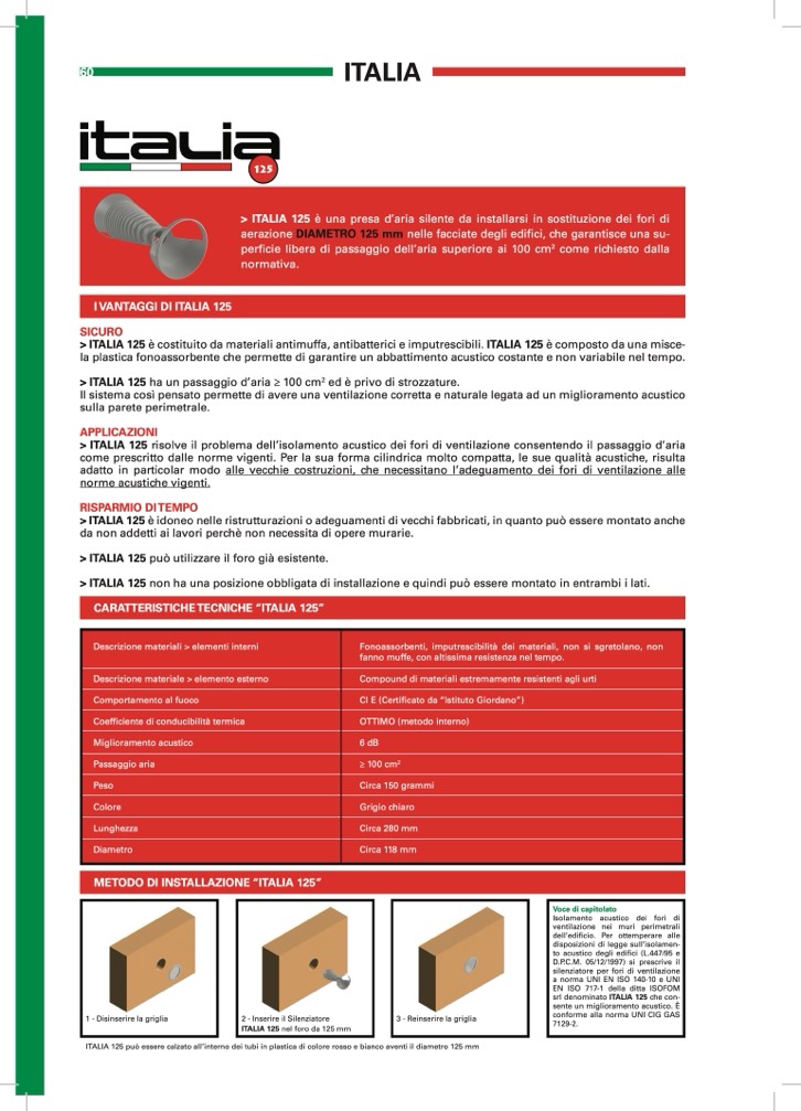 > ITALIA 125 è una presa d’aria silente da installarsi in sostituzione dei fori di