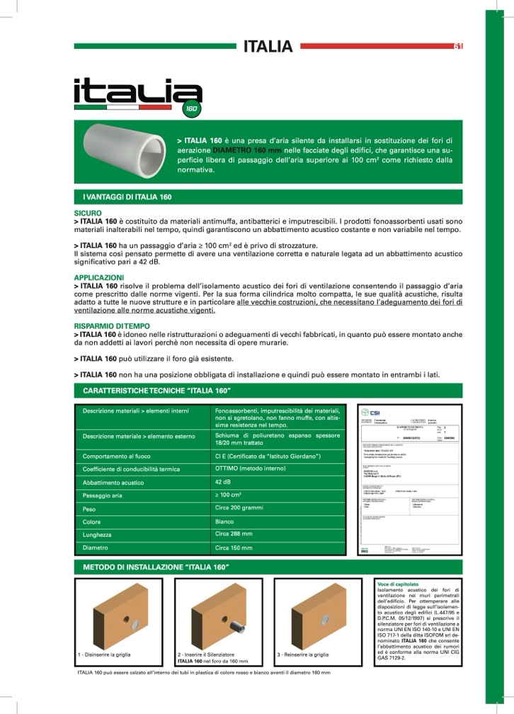 > ITALIA 160 è una presa d’aria silente da installarsi in sostituzione dei fori di