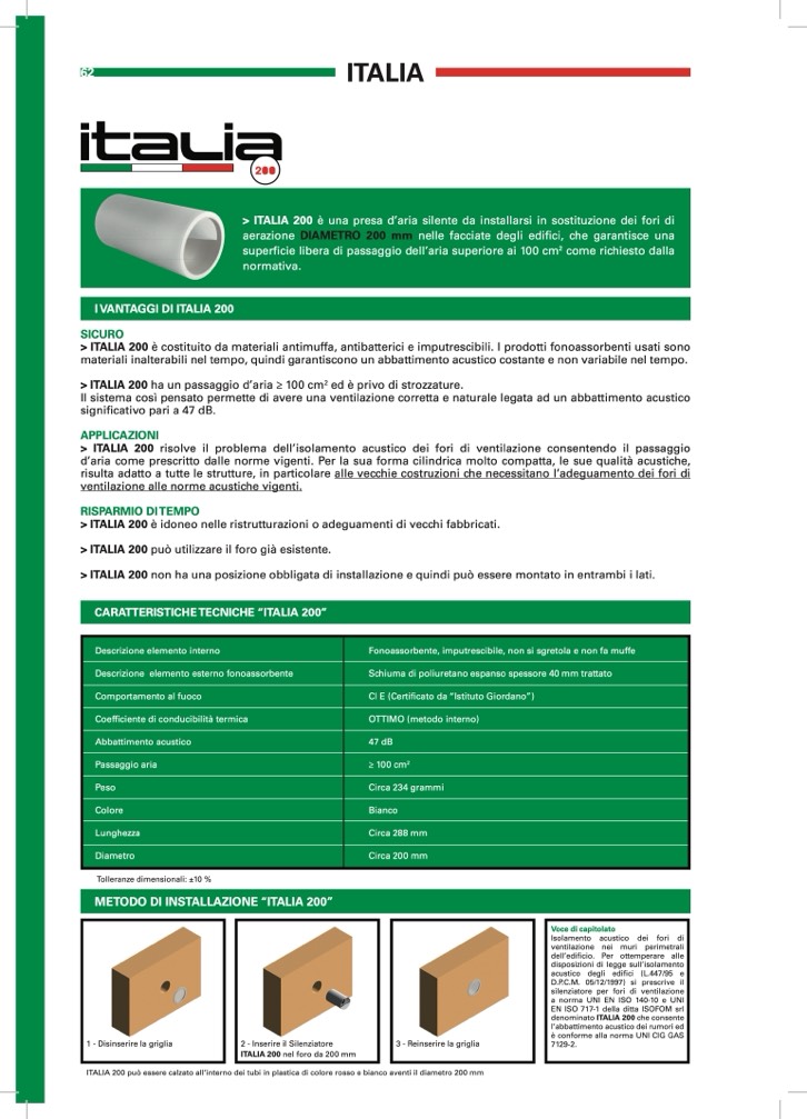 > ITALIA 200 è una presa d’aria silente da installarsi in sostituzione dei fori di