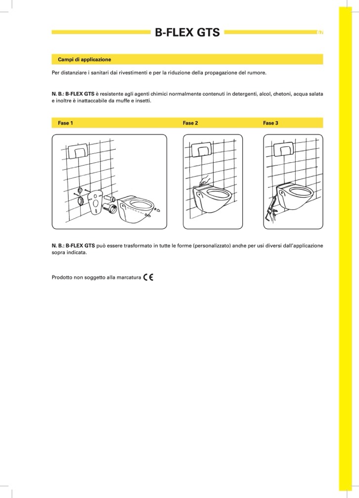 N. B.: B-FLEX GTS è resistente agli agenti chimici normalmente contenuti in detergenti, alcol, chetoni, acqua salata