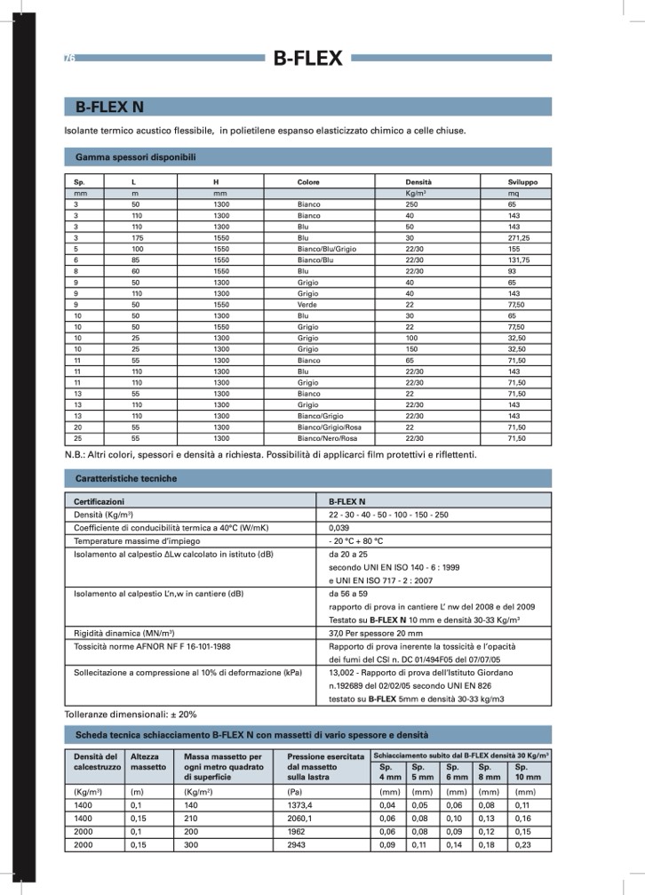 Scheda tecnica schiacciamento B-FLEX N con massetti di vario spessore e densit