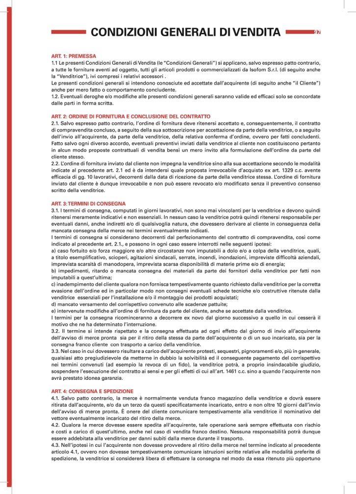 a tutte le forniture aventi ad oggetto, tutti gli articoli prodotti o commercializzati da Isofom S.r.l. (di seguito anche