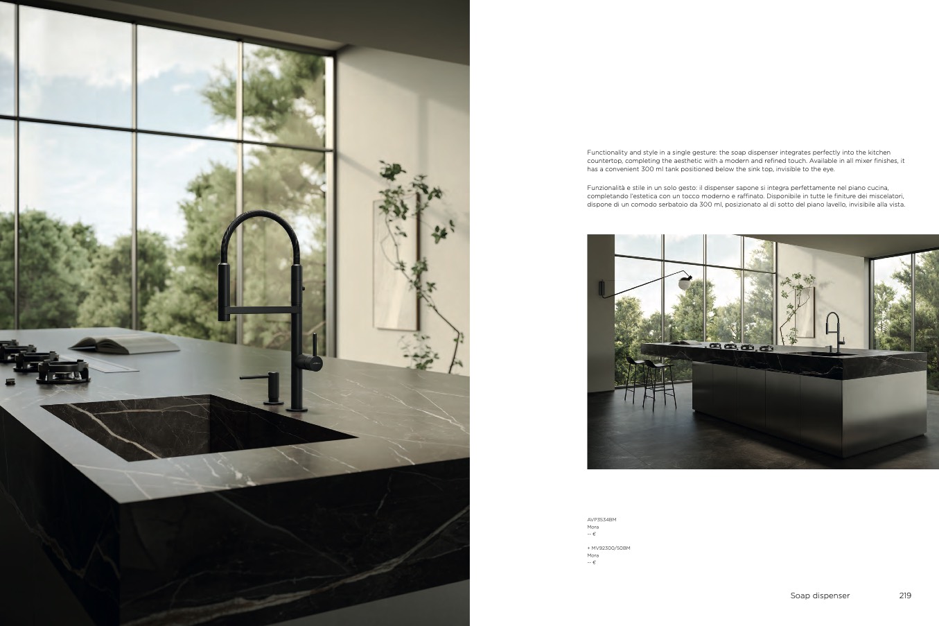 Functionality and style in a single gesture: the soap dispenser integrates perfectly into the kitchen