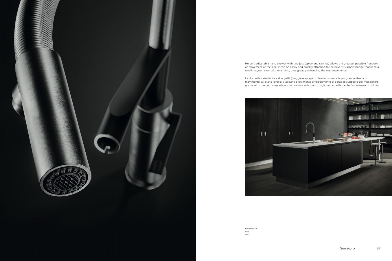 La doccetta orientabile a due getti (pioggia e spray) di Heron consente la più grande libertà di