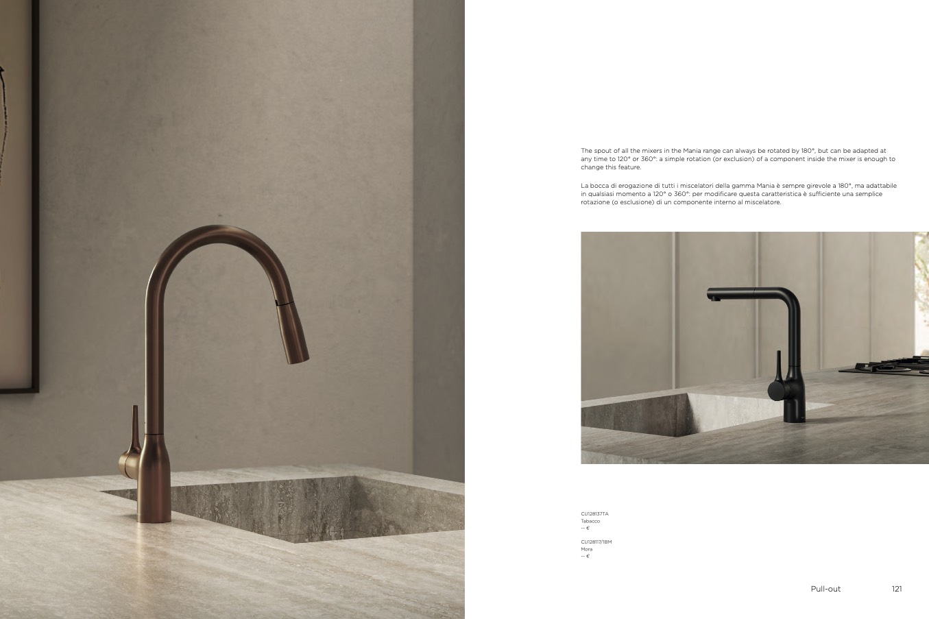 La bocca di erogazione di tutti i miscelatori della gamma Mania è sempre girevole a 180°, ma adattabil