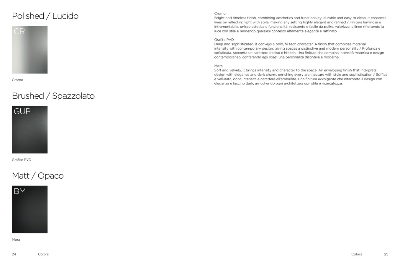 lines by reflecting light with style, making any setting highly elegant and refined / Finitura luminosa
