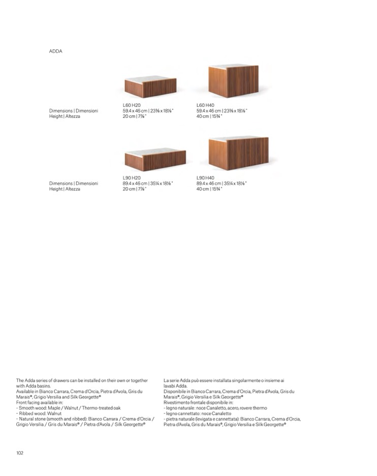 Disponibile in Bianco Carrara, Crema d’Orcia, Pietra d’Avola, Gris du